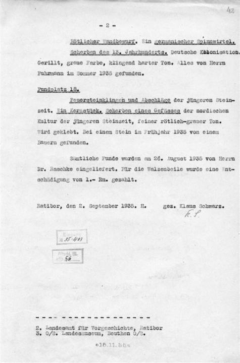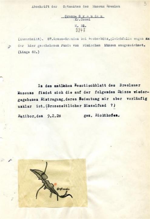 | Literatura: Altschlesische Blaetter 1934, z.2,s.37 Altschlesische Blaetter 1935, z.10,s.46 J. Bukowska-Gedigowa - Kultura pucharów lejk. w dorzeczu górnej Odry |