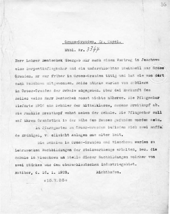 | 1935 - znaleziska nauczyciela Fuhrmanna. Zaginęły. | ||