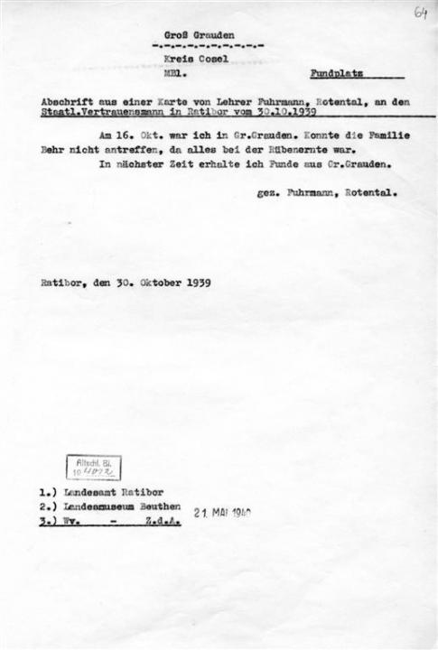 | Literatura: Altschlesische Blatter, 1928,2 str 30 Altschlesische Blatter, 1936,5 str 161 |