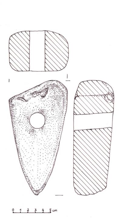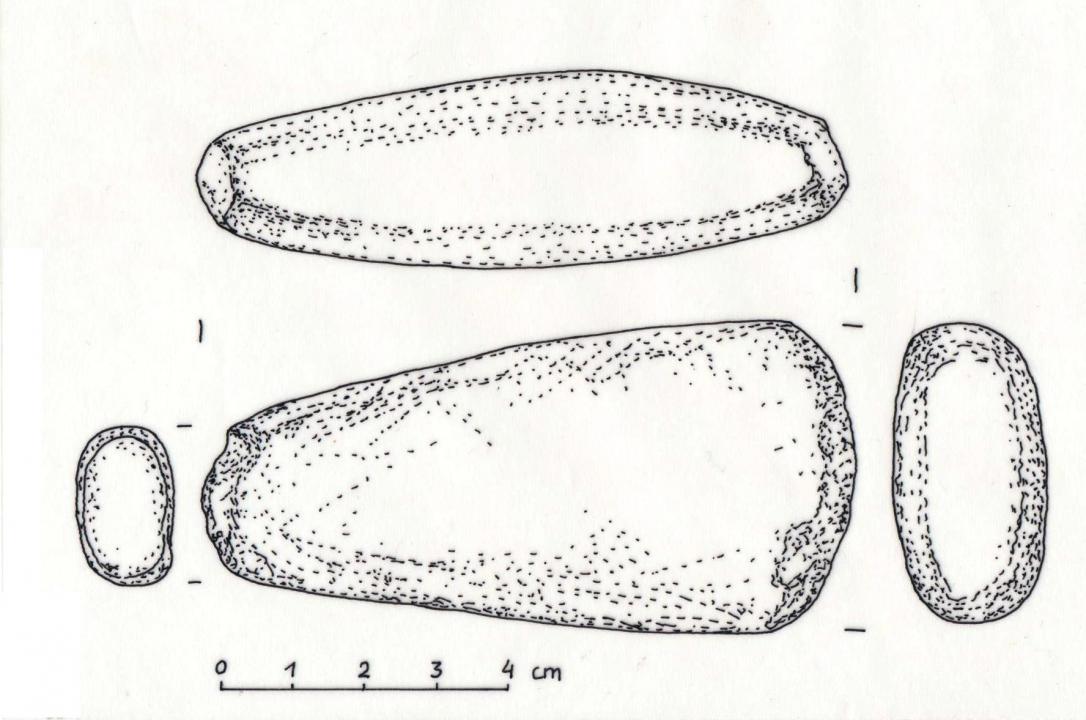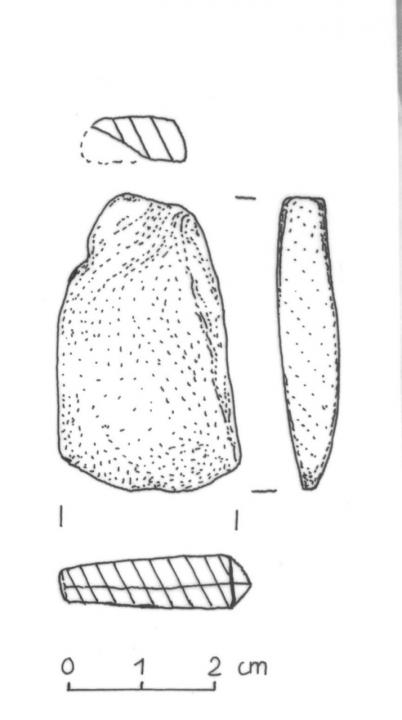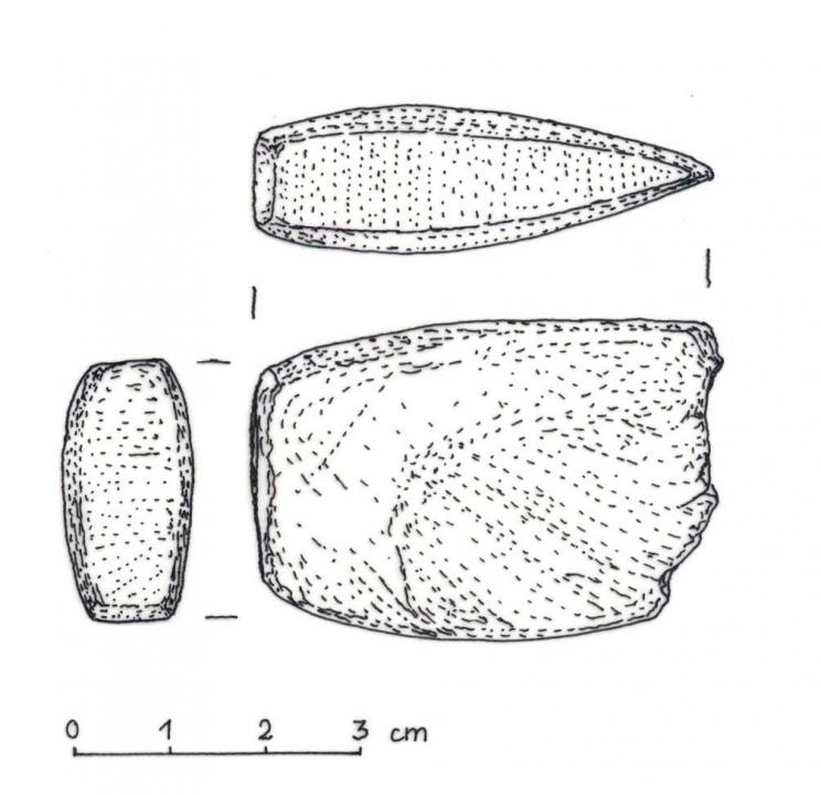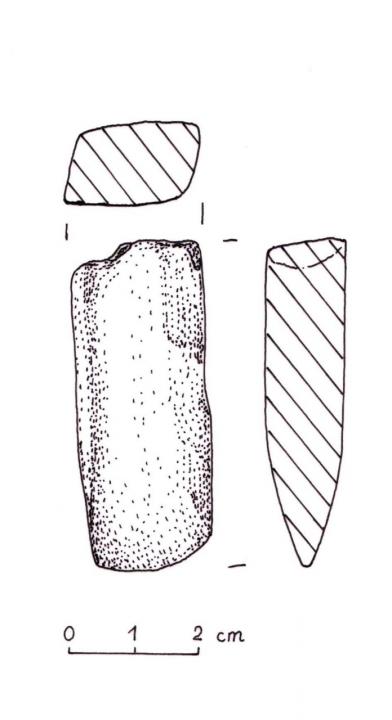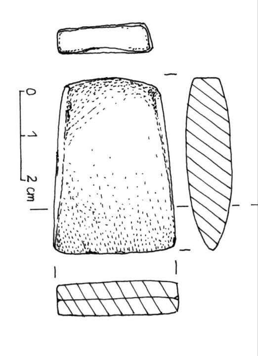 | Siekierkę znalazł w 1936 nauczyciel Fuhrmann (dł. 7cm, szer. 5cm) Materiały przech. w: MŚO, nr inw.N-1372 |