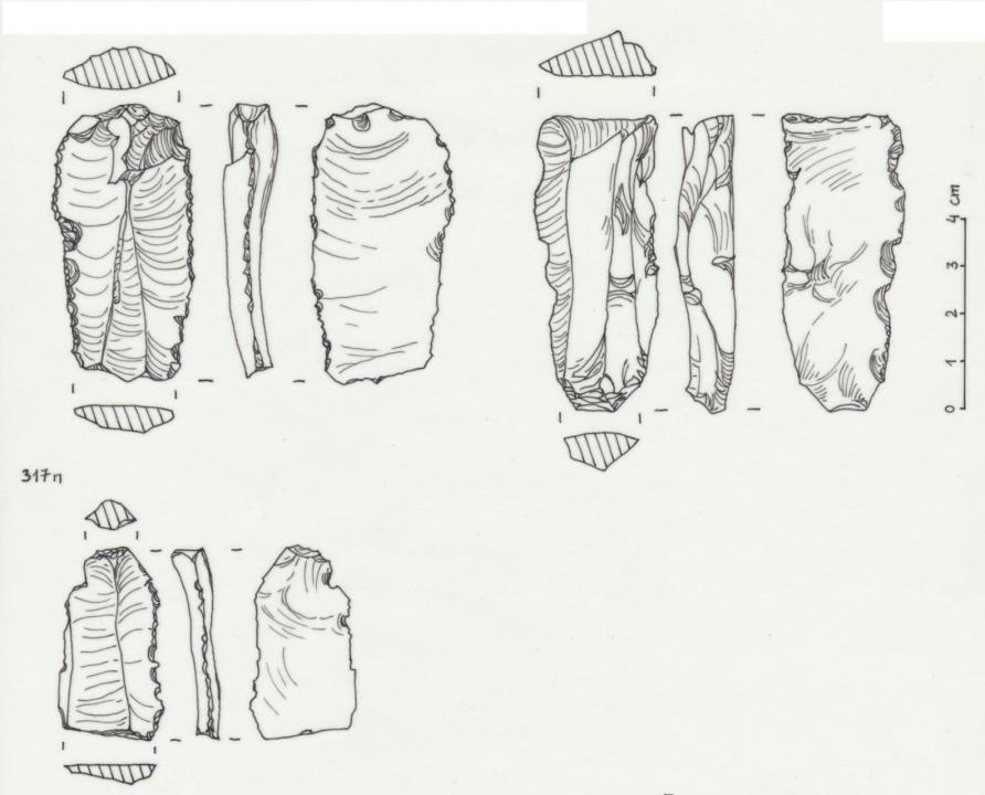 | 1. punkt osadniczy | neolit | 3 ostrza krzem. fr. naczynia |